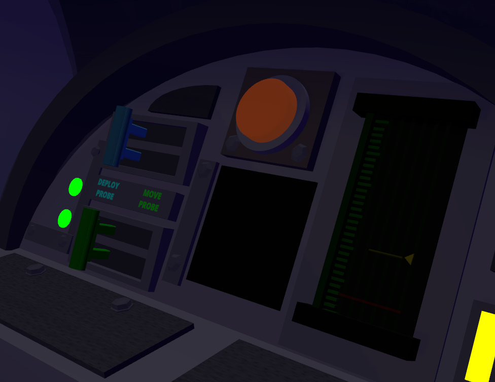 - The blue lever will deploy/retract the probe when clicked. The green lever will allow you to move the probe and it will only work when the probe is deployed.